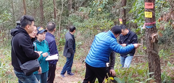 [사진1 : 중국 광동성내 임업시험구역에서 평가검증단이 최종 시험검증작업을 하는 모습]